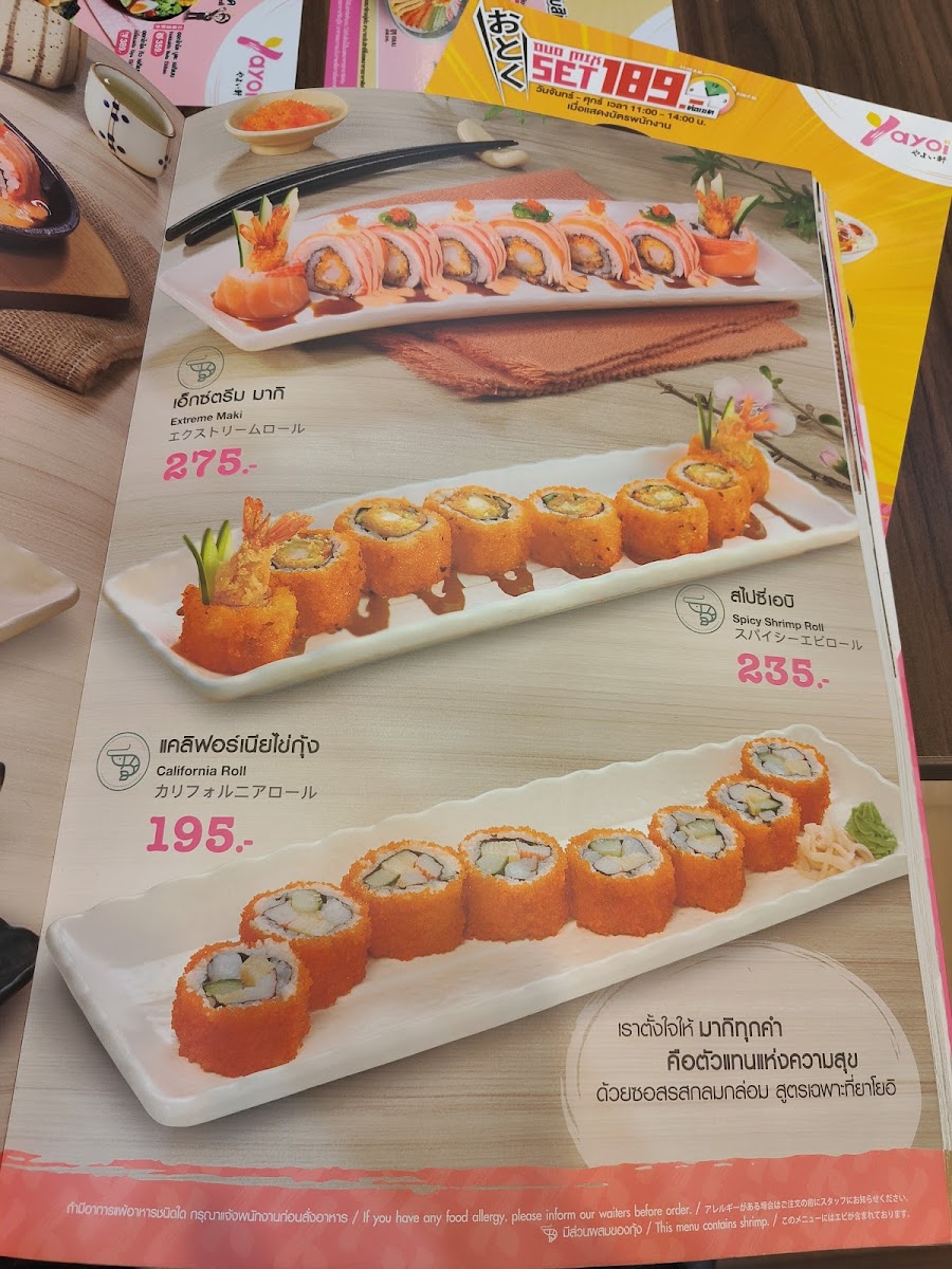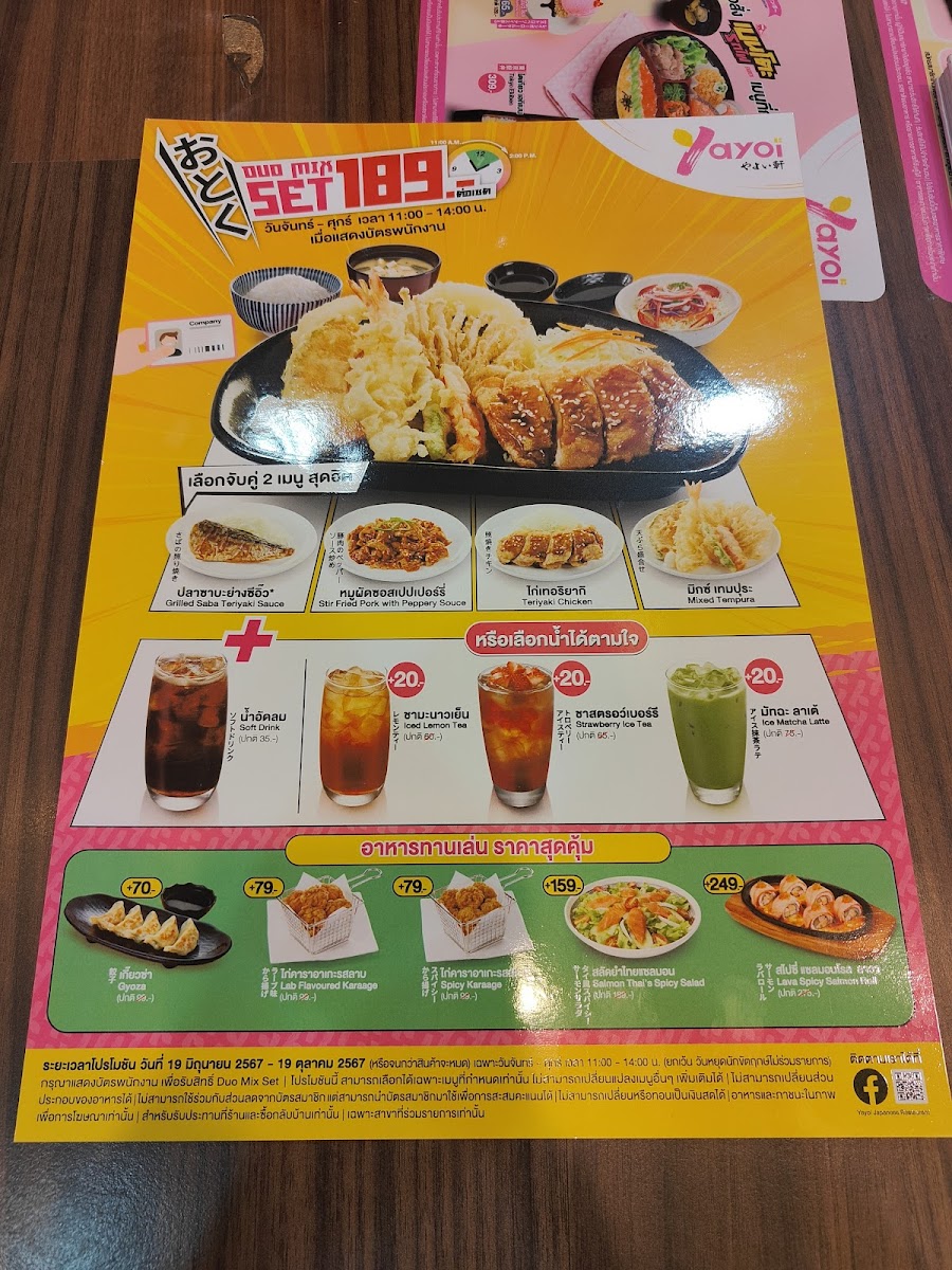 Yayoi Central Chaengwattana offers a delightful Japanese dining experience with a menu that meets the expectations of authentic and affordable cuisine. Located on the 5th floor of Central Plaza Chaengwattana, this restaurant serves an impressive variety of dishes including tempura, ramen, udon, sushi, and various rice sets. A highlight is the tempura platter paired with cold soba, complemented by their flavorful tempura dipping sauce—so good that it often calls for multiple servings.